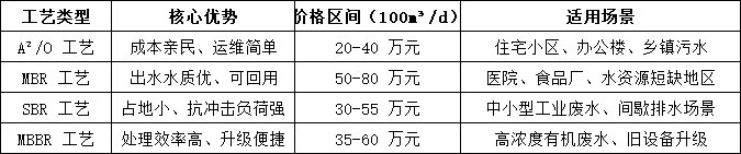 生活污水場景:水質穩定,工藝簡單,100m³/d 設備全生命周期(10 年)總成本約 50-80 萬元,年均成本 5-8 萬元。